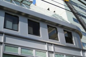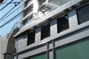テナントビルの1Fと地下、ワインバー・ワインショップのお仕事でした。外部ファサードアルミパネルは実測、図面作成、製作までをお任せいただきました。内装は光天井、グラスラック、ワインセラー、ガラスパーティションほかを製作させていただきました。